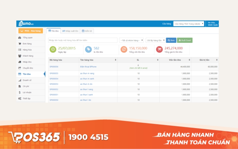 - Báo cáo tồn kho: Cung cấp báo cáo tồn kho chi tiết, giúp bạn phân tích và đưa ra quyết định kinh doanh chính xác.
