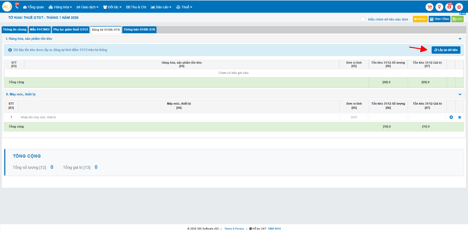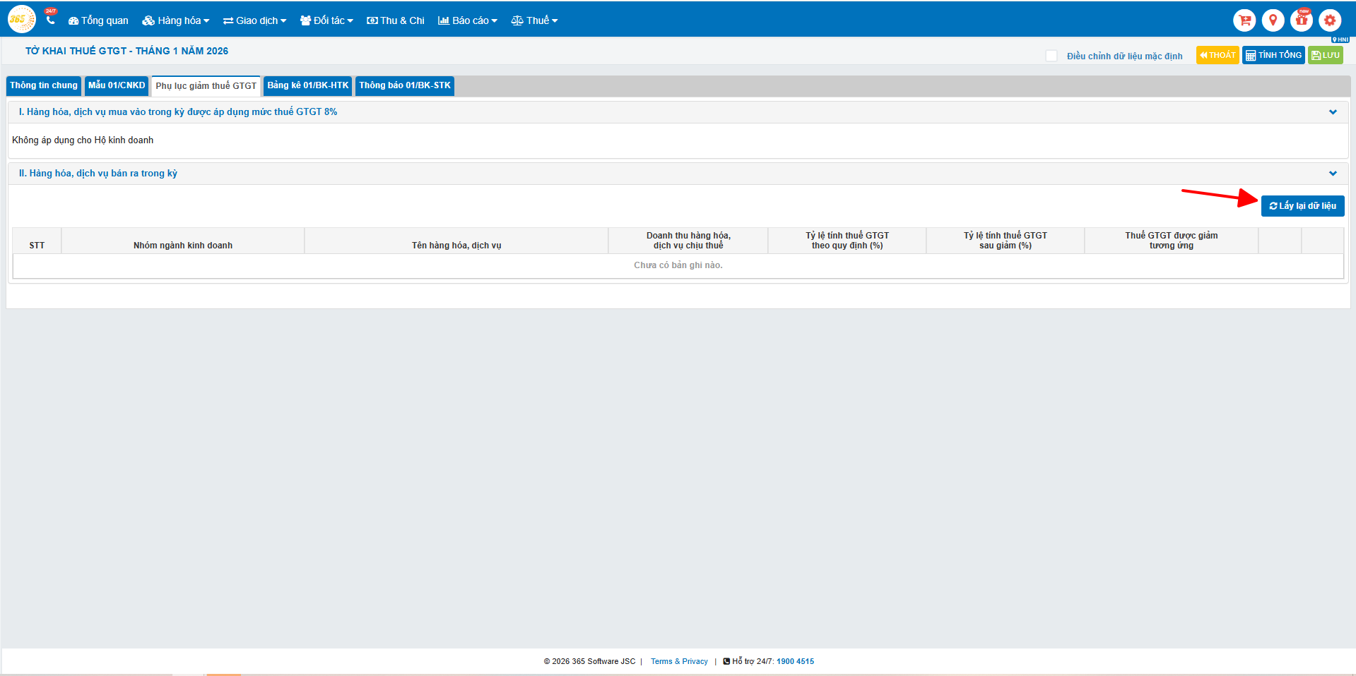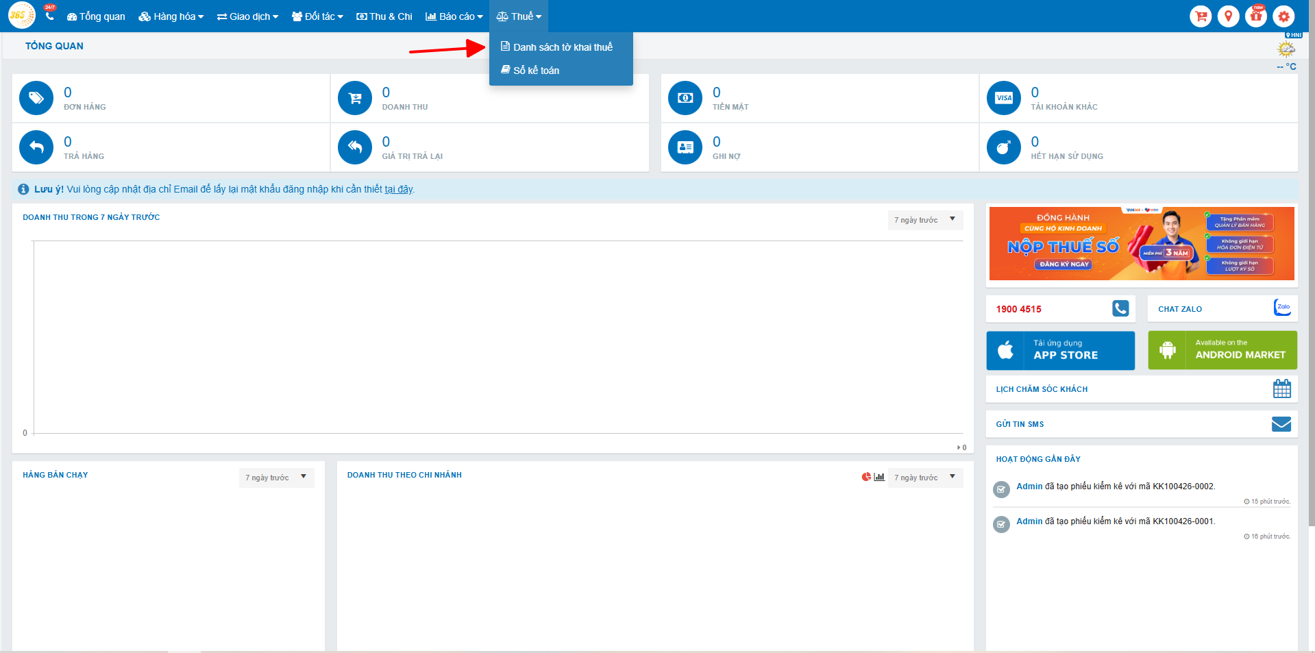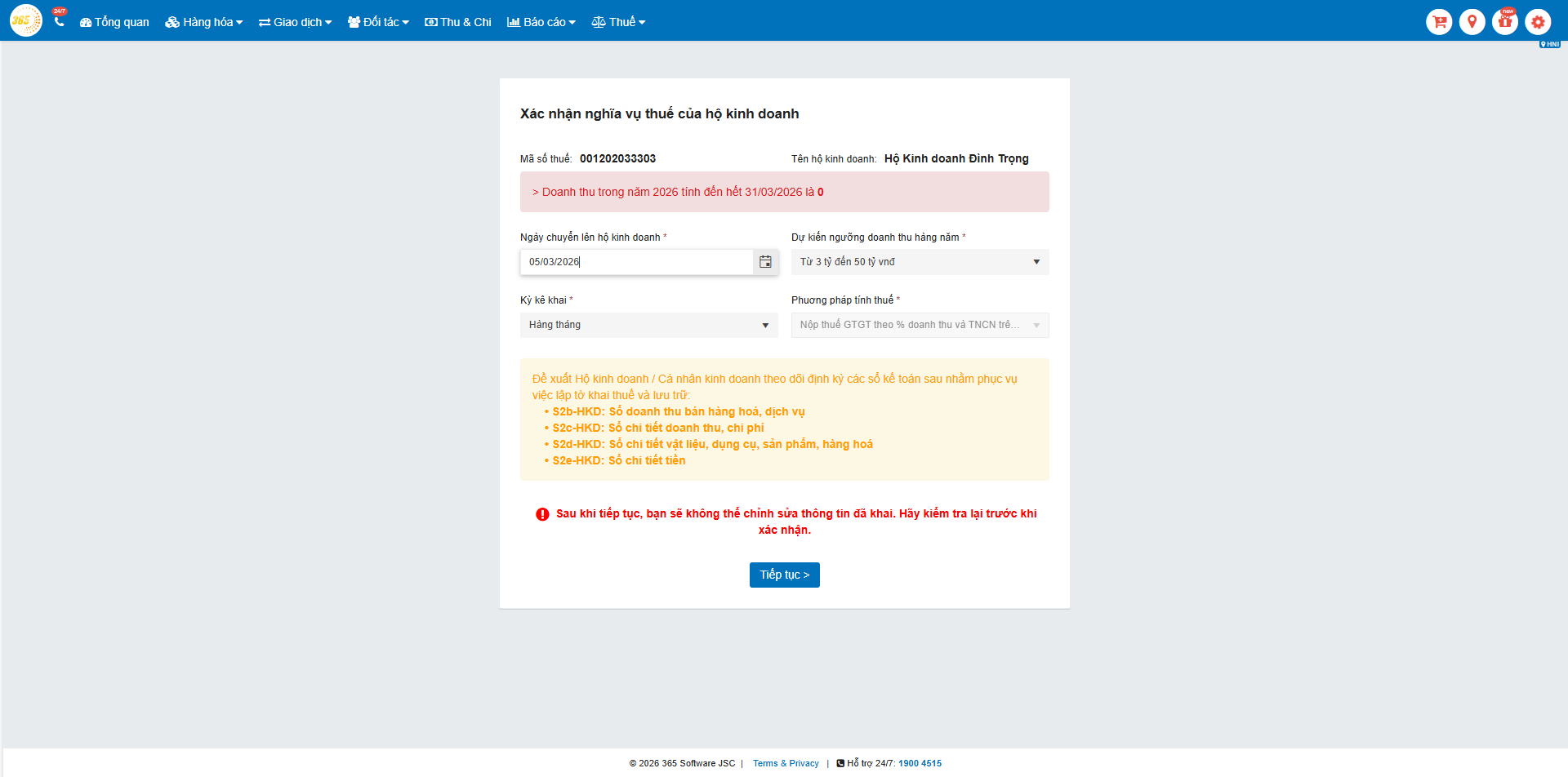 - Đã hoạt động trên POS365 để có dữ liệu doanh thu, tồn kho trước đó (nếu không sẽ chưa có sẵn dữ liệu để kết xuất sổ kế toán hoặc điền tự động vào tờ khai)