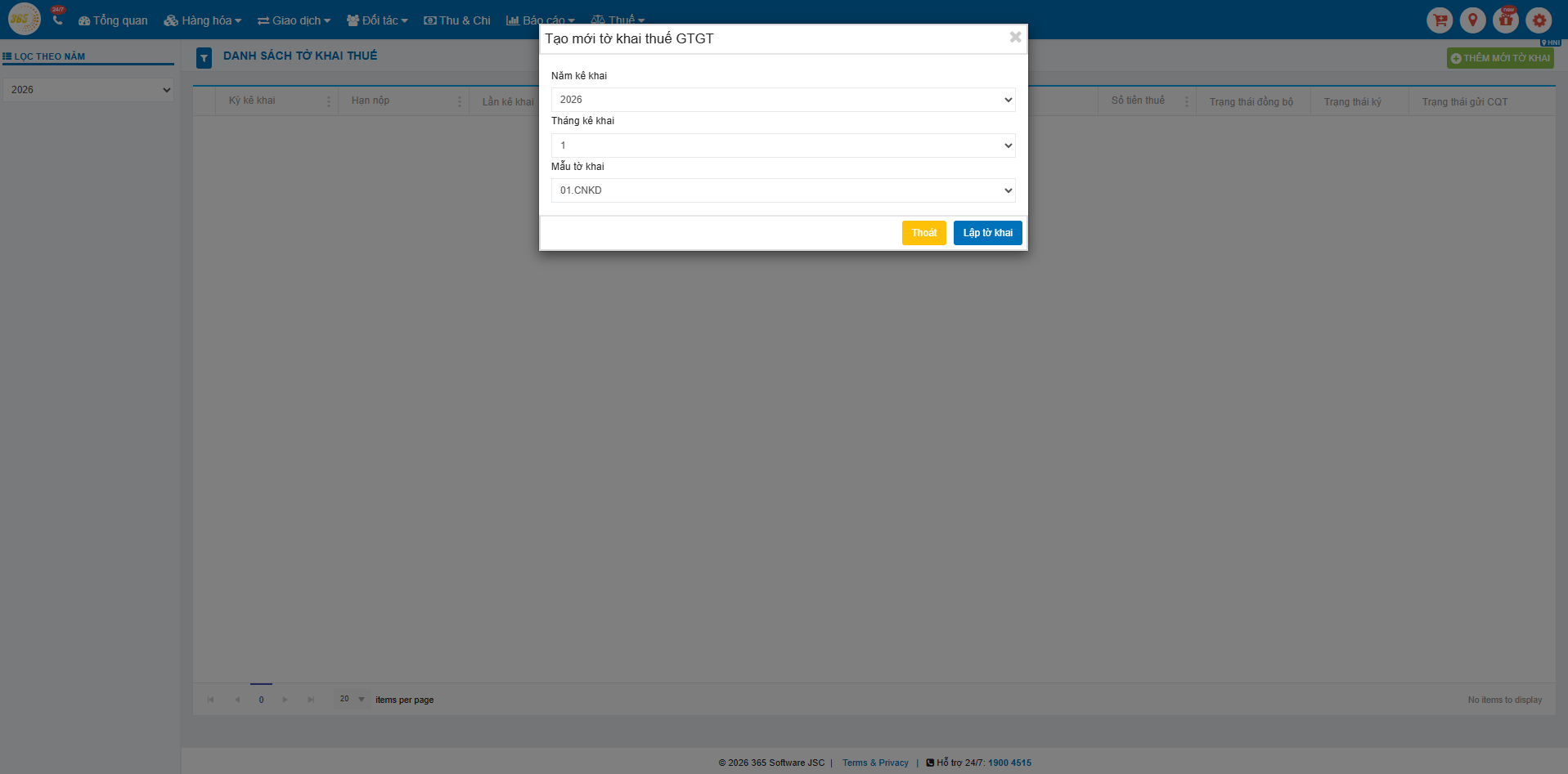 → Đây là điều kiện bắt buộc để hệ thống có thể lập tờ khai thuế.