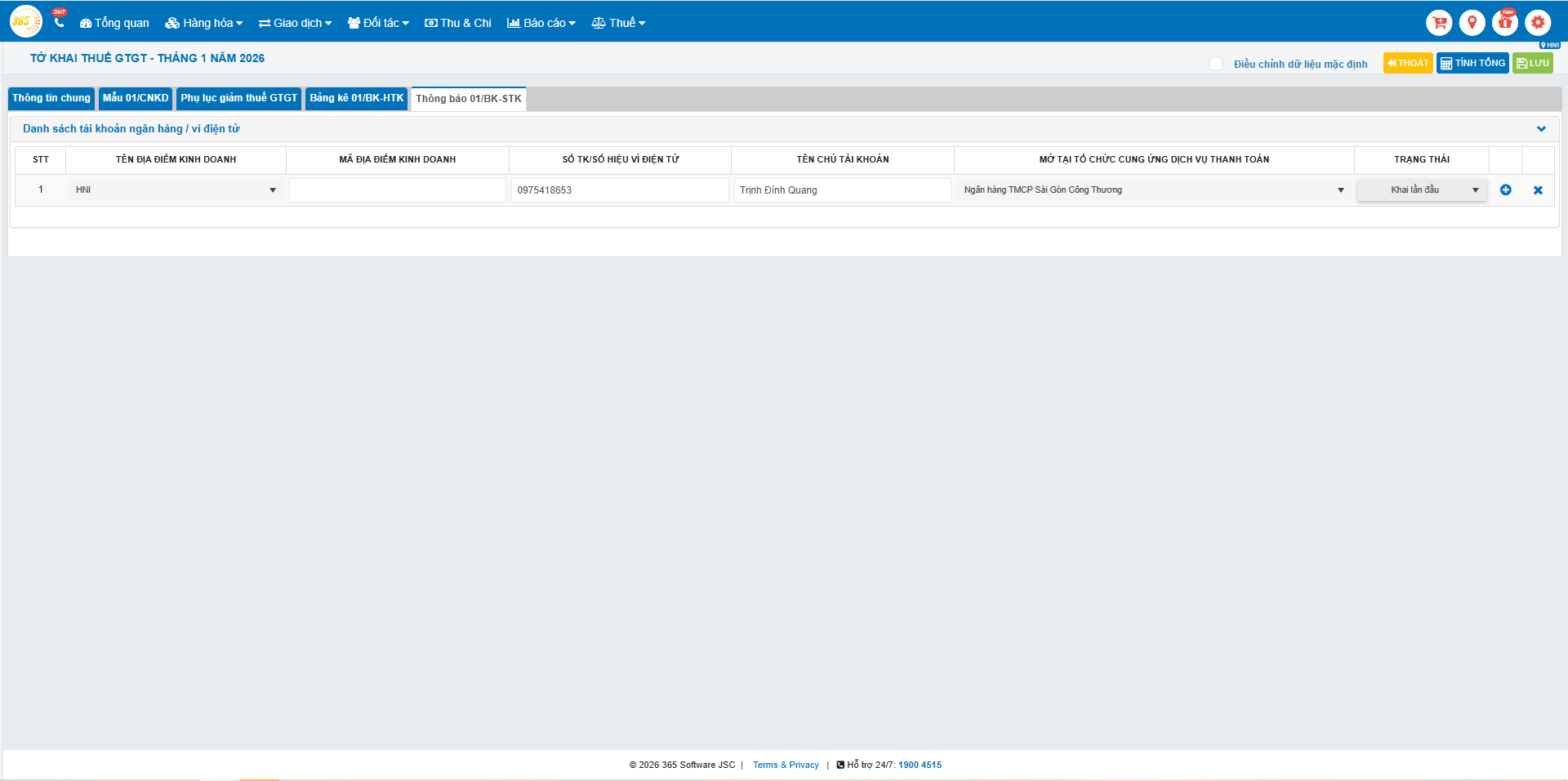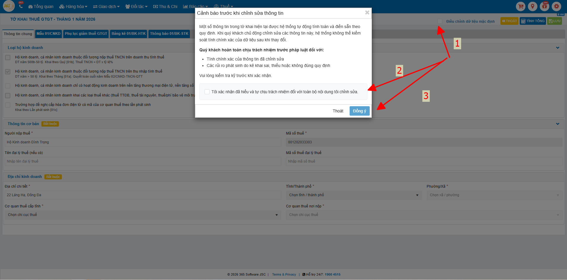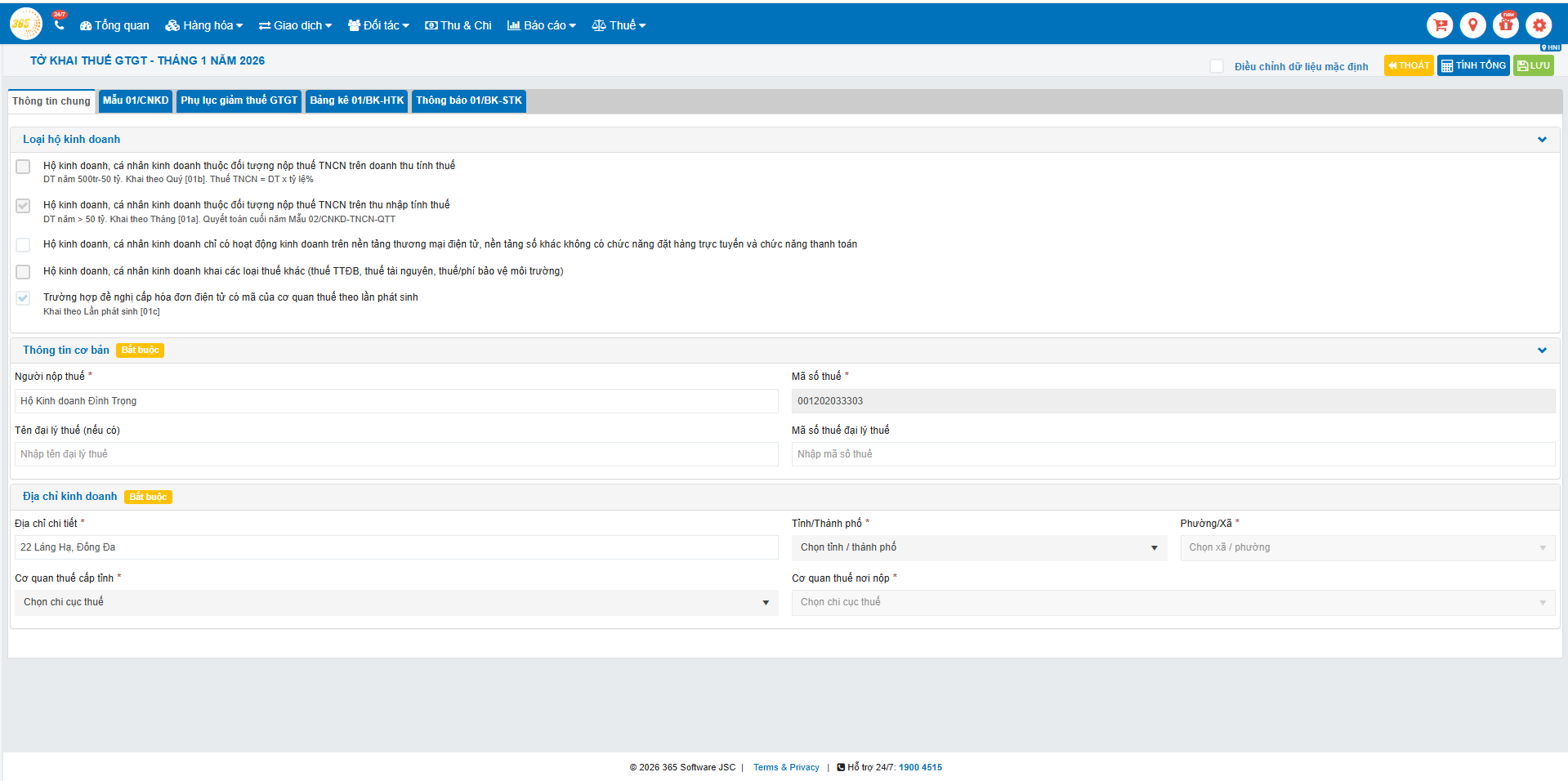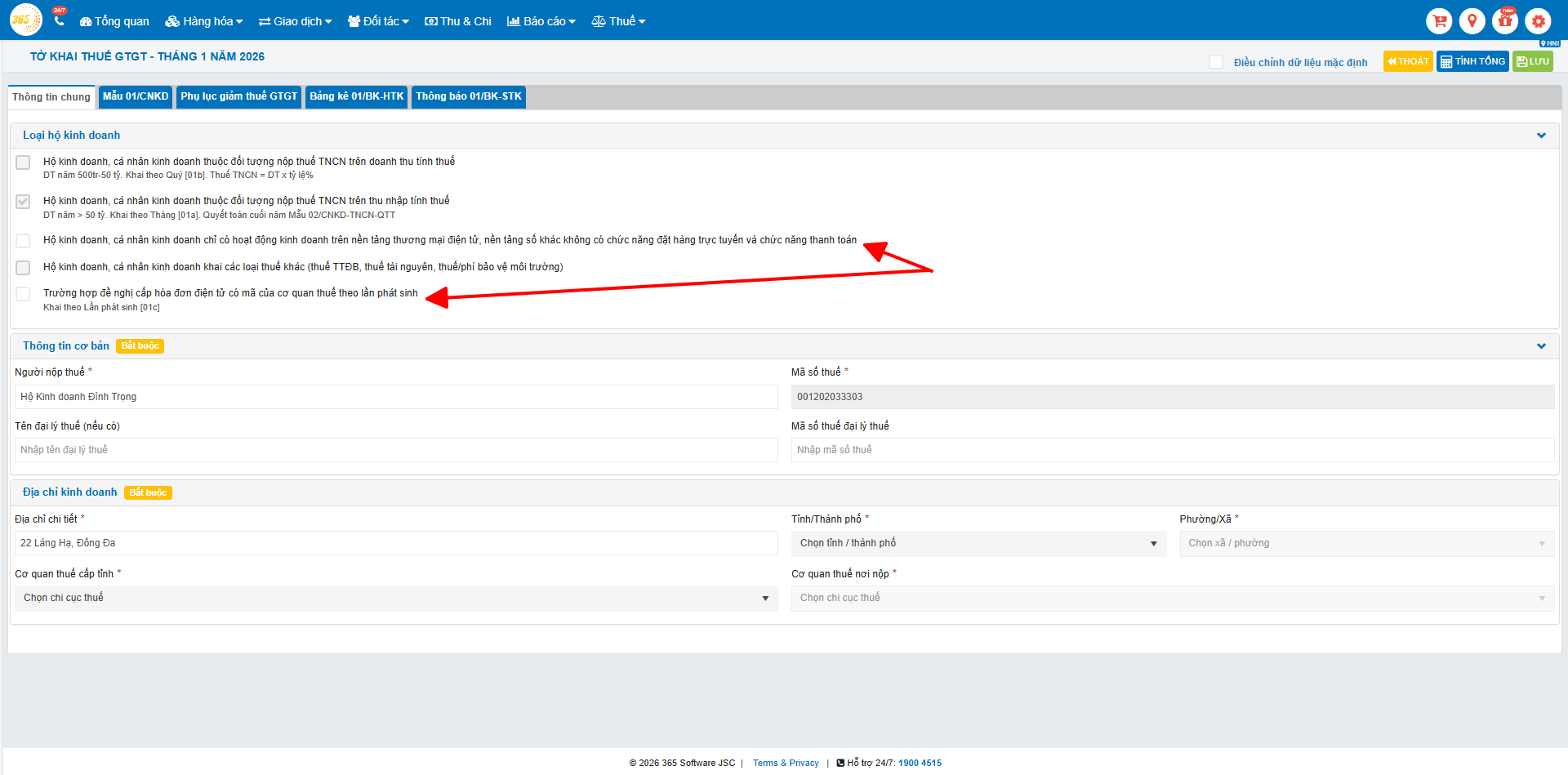 Hướng dẫn sử dụng tính năng tờ khai thuế 01/CNKD cho Hộ kinh doanh trên phần mềm quản lý bán hàng POS365