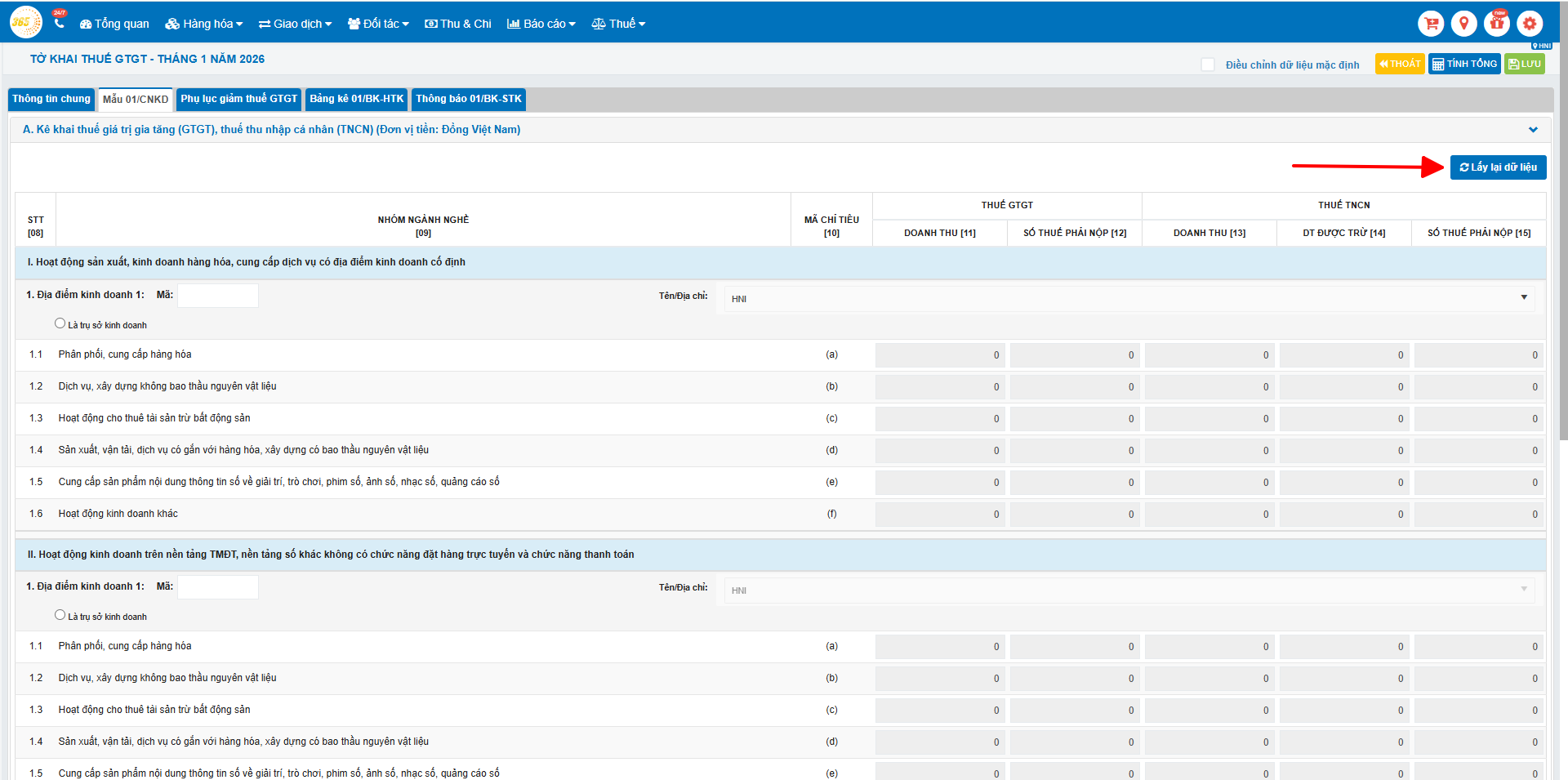 → Số liệu được tổng hợp theo từng chi nhánh (địa điểm kinh doanh) của HKD.