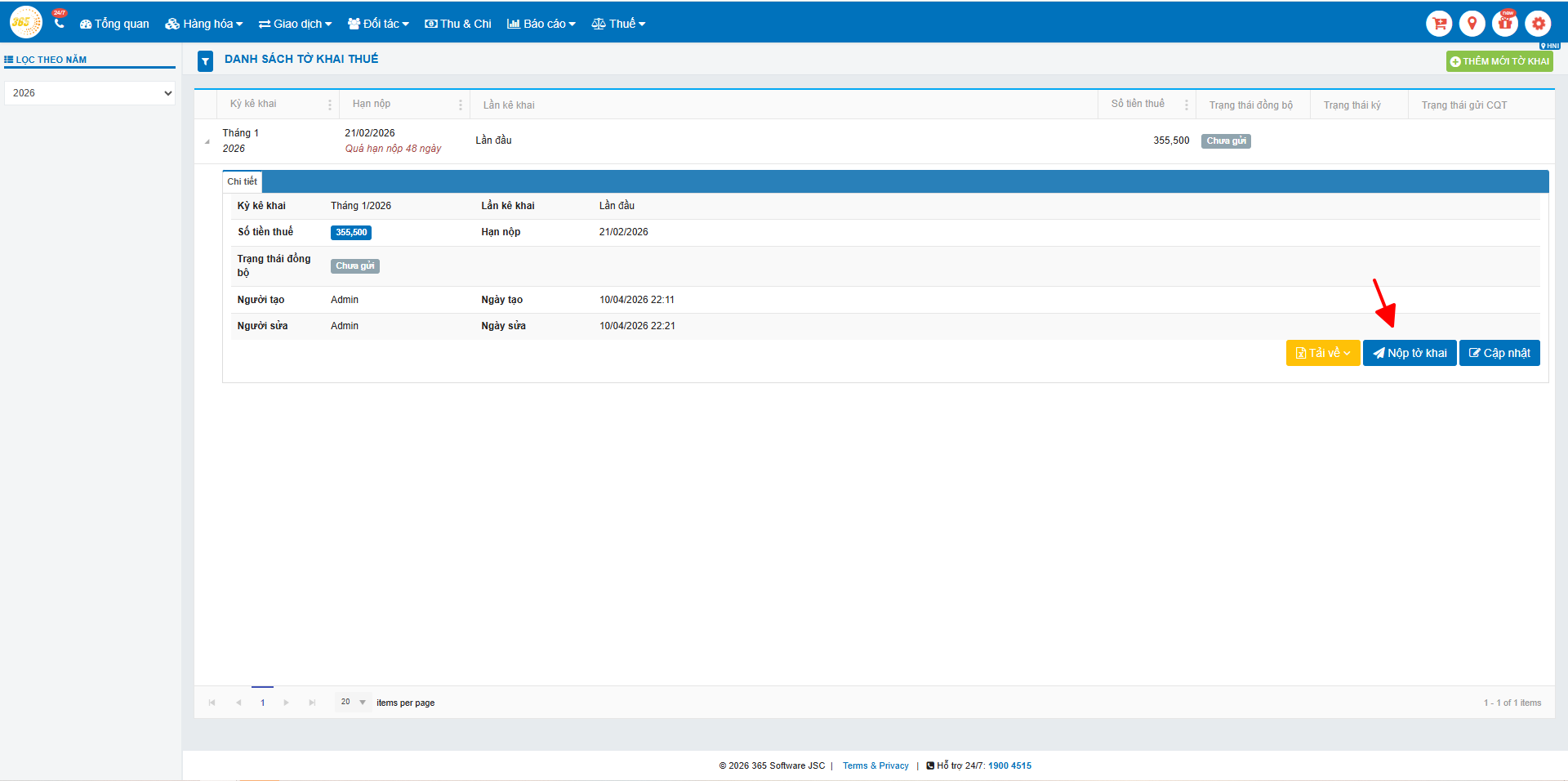 Nhấn “Nộp tờ khai” tại màn hình danh sách