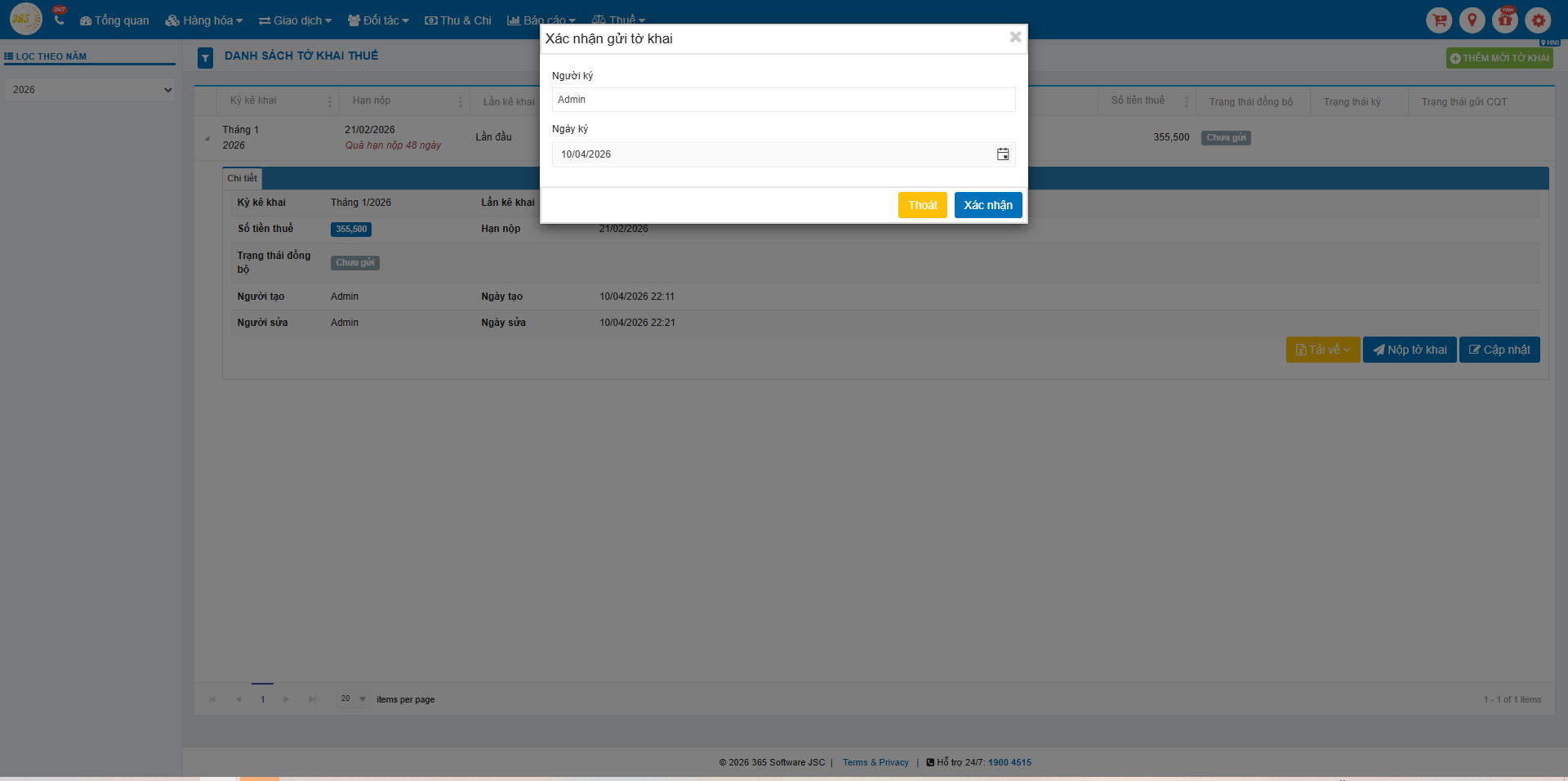 4. Quy trình tạo và nộp tờ khai thuế HKD (mẫu 01/CNKD) trên POS365