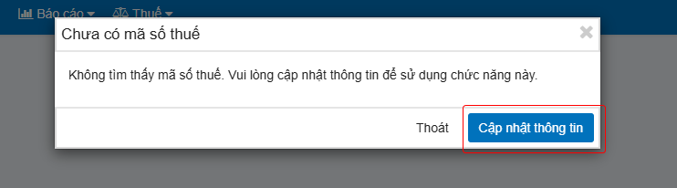 - Người dùng đã khai báo Mã số thuế trên hệ thống