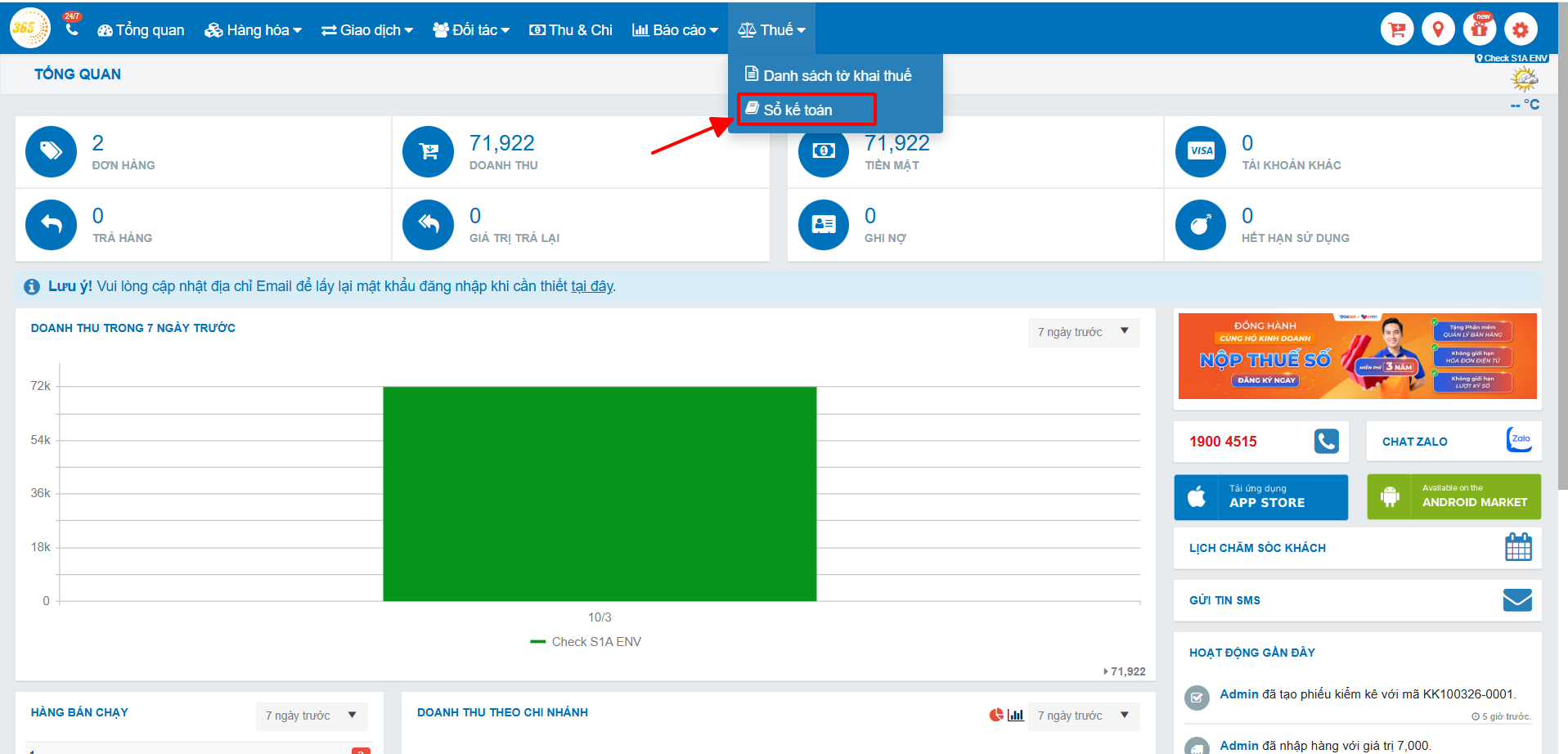 2. Hướng dẫn sử dụng tính năng sổ kế toán trên phần mềm quản lý bán hàng POS365