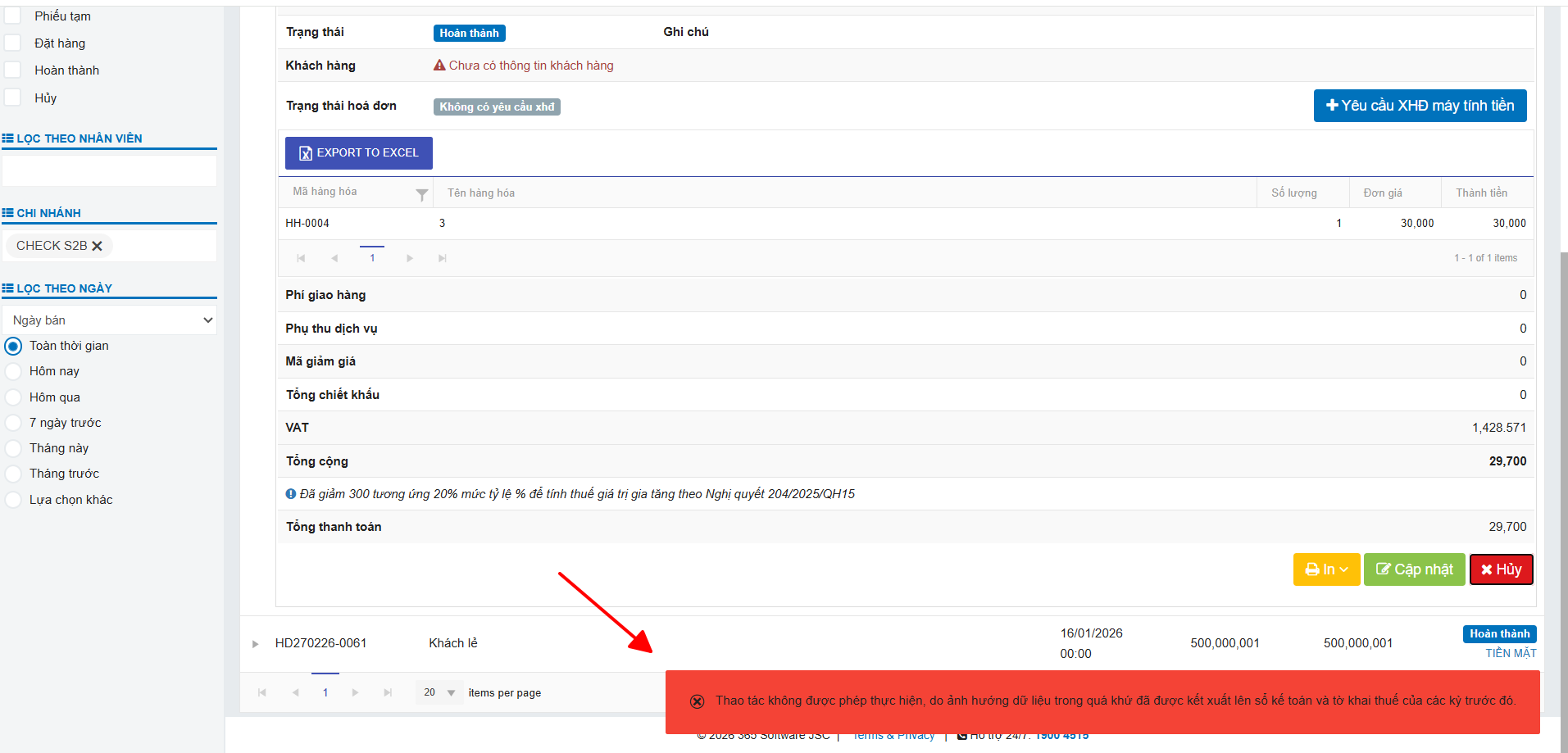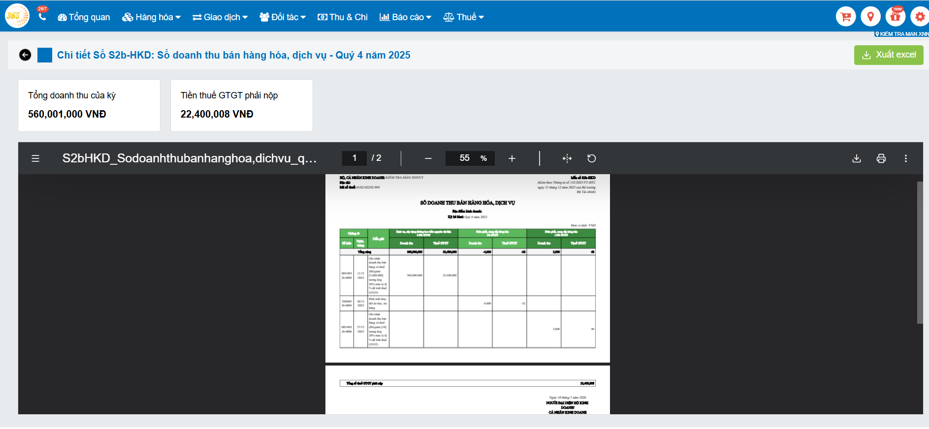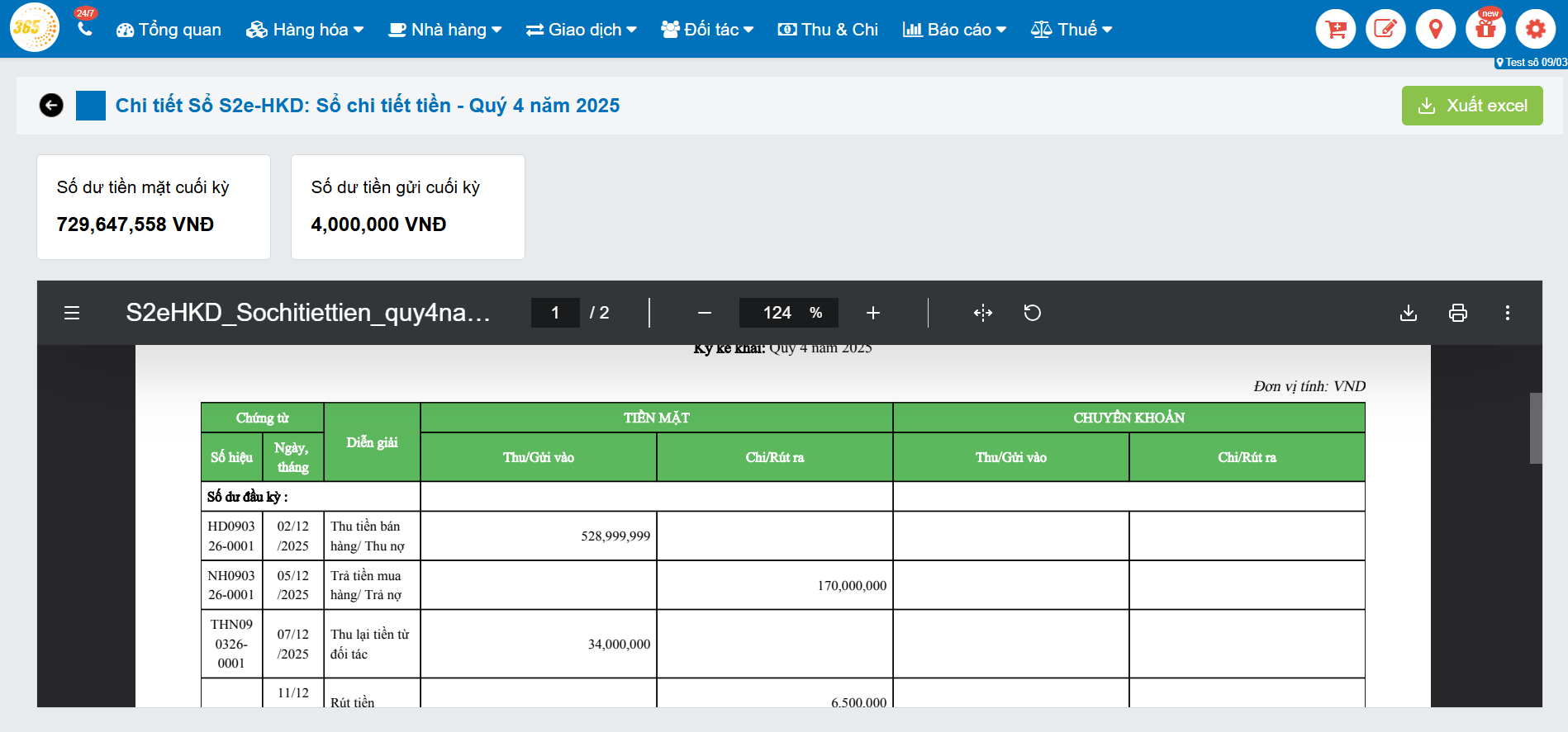 Lưu ý: Trên phần mềm POS365, sổ S2d sẽ tổng hợp số liệu theo từng chi nhánh nếu hộ kinh doanh có nhiều điểm kinh doanh.