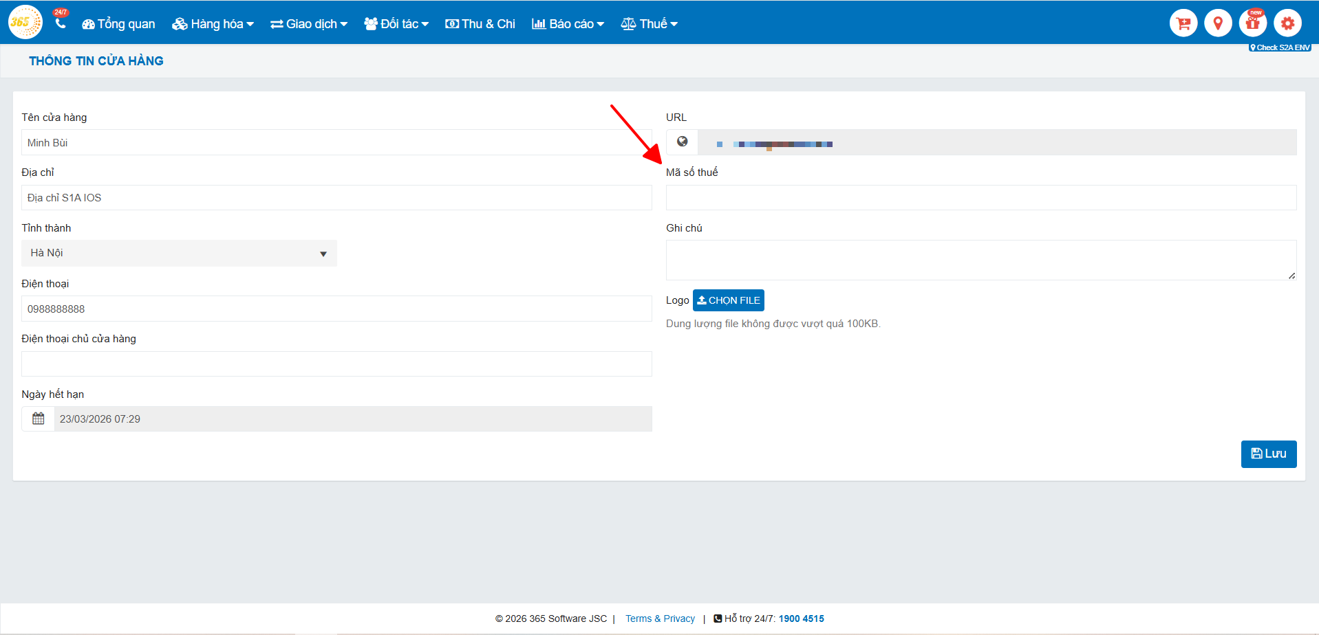 Truy cập màn hình Thông tin cửa hàng và nhập mã số thuế. Lưu ý, mỗi hộ kinh doanh chỉ sử dụng một MST duy nhất.