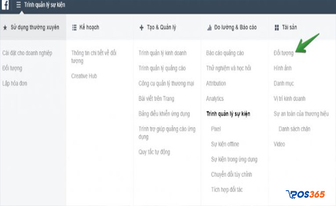 Ở giao diện Facebook Manager -> Tài sản -> Đối tượng