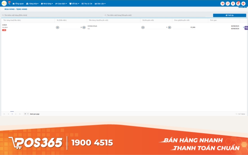 Chọn mục Mua hàng tặng hàng trong chương trình khuyến mãi