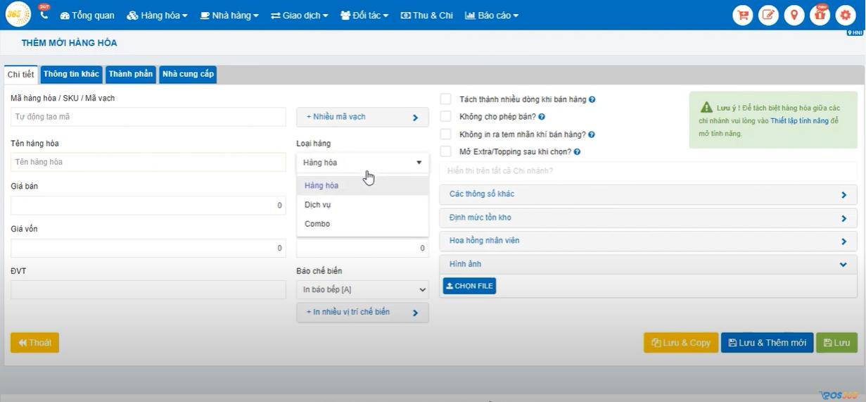 Tùy vào từng mô hình kinh doanh, khi thêm hàng hóa bạn hãy chú ý tích đúng loại hàng để có thể quản lý chính xác nhất.