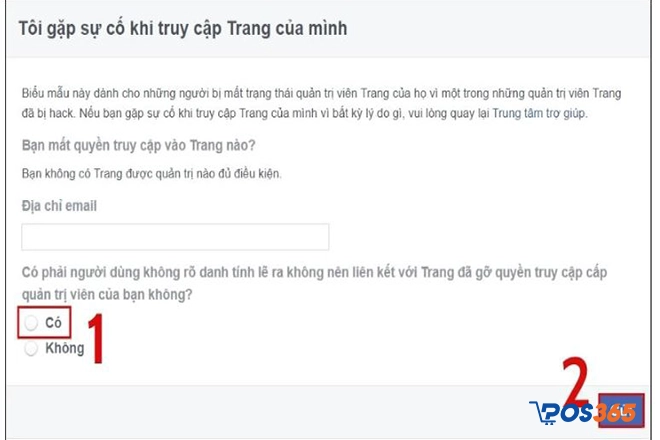 Bước 2: người dùng hãy truy cập vào đường link https://www.facebook.com/help/contact/1280439701975125. Người dùng tiến hành điền địa chỉ email, nhấn chọn Có và Gửi.