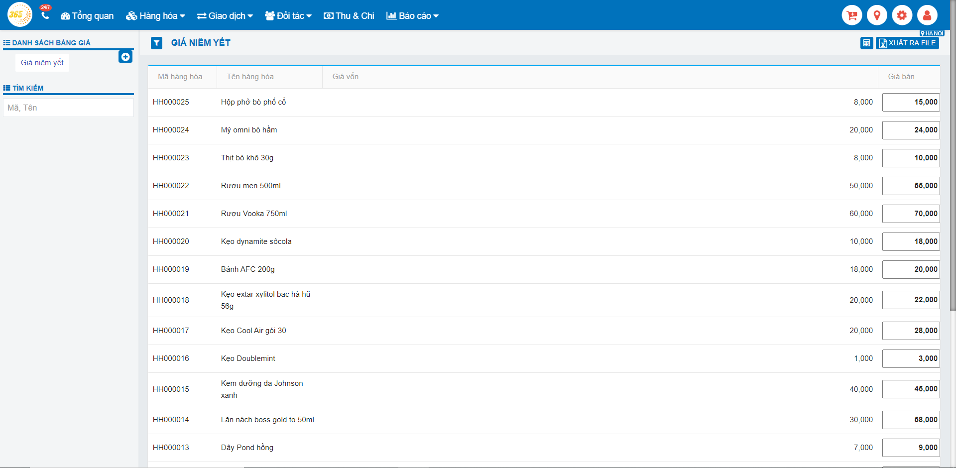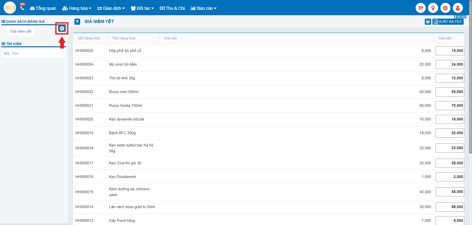 Với hành động truy cập thiết lập bảng giá trong phần mềm bán hàng POS365 các bạn có thể tạo ra nhiều bảng giá khác nhau của cùng một danh sách hàng hóa để phục vụ nhiều mục đích khác nhau của cửa hàng. Danh sách hàng hóa tạo ra trong phần Danh mục hàng hóa sẽ mặc định trong bảng “Giá niêm yết”.