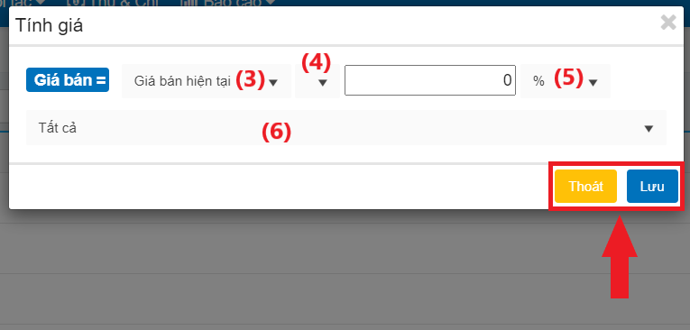 (5): Lựa chọn % hoặc Giá trị để tính giá bán.